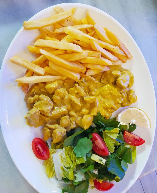Köri Baharatı ve Krema İle Tatlandırılmış Tavuk Paçaları, Salata ve Cips